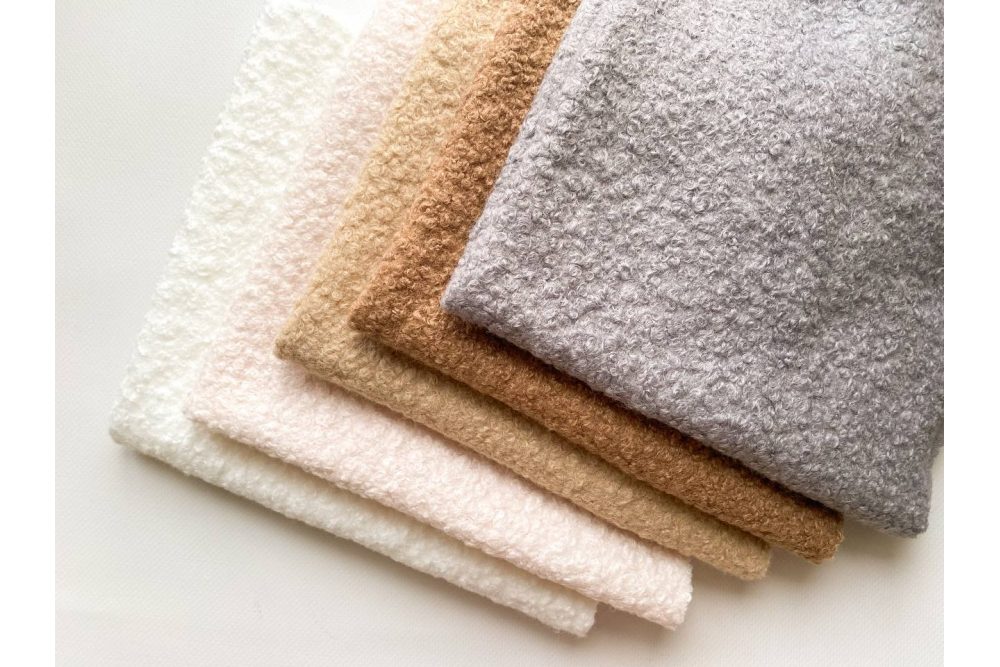 Букле – це м’яка, фактурна тканина з унікальною текстурою, яка створюється шляхом особливого плетіння ниток із завитками та вузликами. Вона має рельєфну або пухку поверхню, що надає виробам особливого шарму та робить їх приємними на дотик.