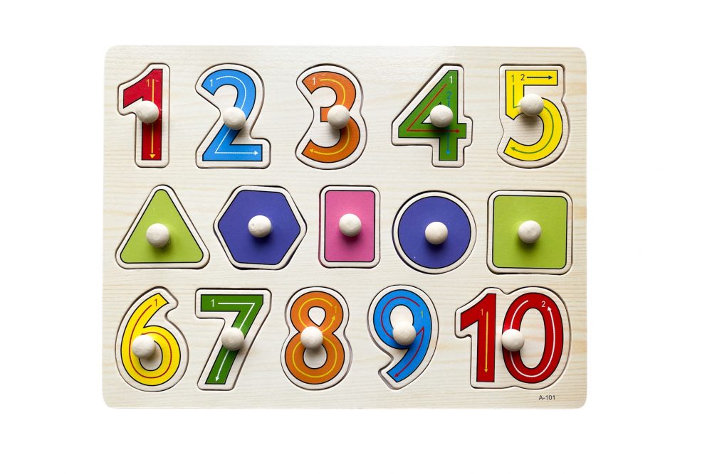 Дерев'яний планшет "Цифри/числа 1-10", пазл, гра-вкладалка Монтессорі