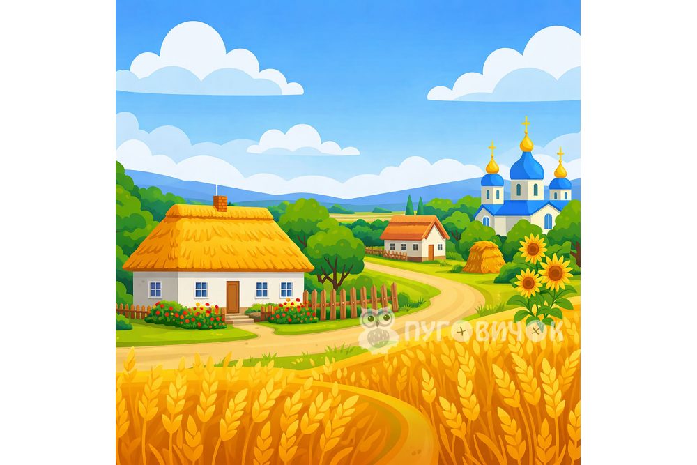 Фетр корейський жорсткий з візерунком фон: село 20х20см