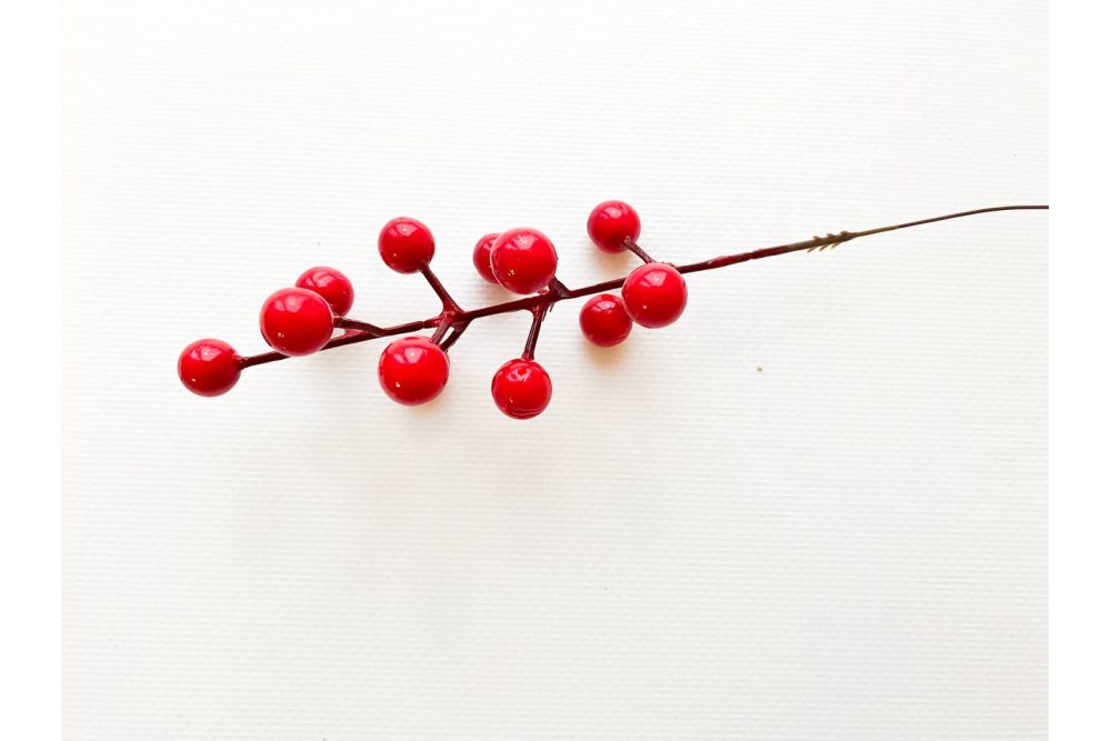 Калина лакова декоративна — яскравий акцент для декору, флористики та рукоділля. Блискучі червоні ягідки виглядають реалістично, не вигорають, не обсипаються та стійкі до вологи й пилу. Гнучкий дріт дозволяє легко формувати гілочку під будь-яку композицію.