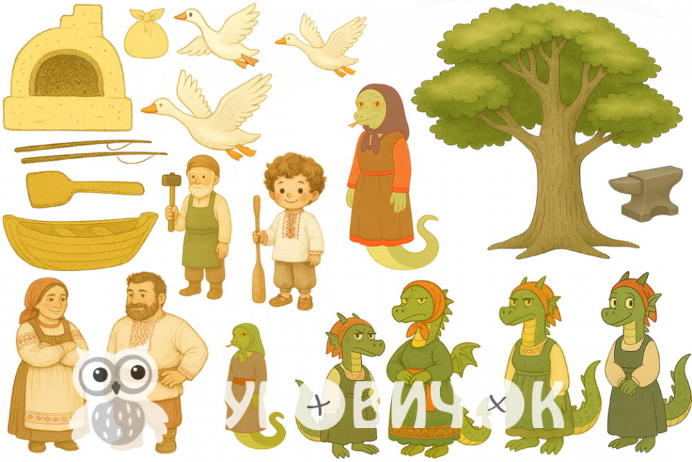 Усі персонажі намальовані дитячим художником, з урахуванням особливостей сприймання малюнка дитиною та національної традції у костюмах персонажів.