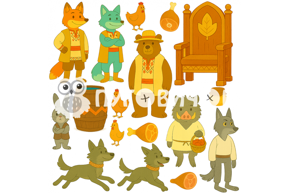 Усі персонажі намальовані дитячим художником, з урахуванням особливостей сприймання малюнка дитиною та національної традції у костюмах персонажів.
