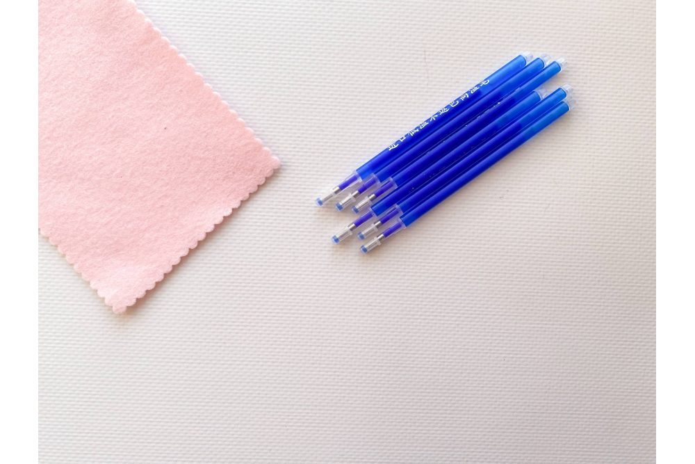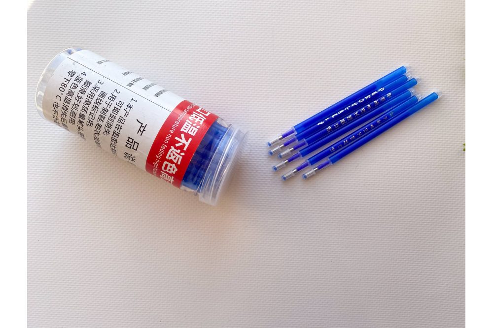 Також слід бути готовим, що темне чорнило може повністю не зникнути на білому та іншому світлих відтінках матеріалу, тому рекомендуємо протестувати розмітку на шматочку матеріалу, перш ніж застосовувати на основному виробі.
