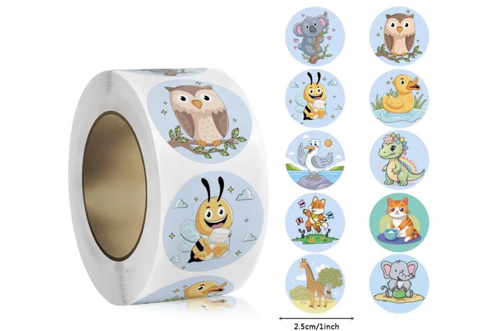 Наліпки на бобіні "Звірята 9" 500шт/рул., діаметр 2,5 см