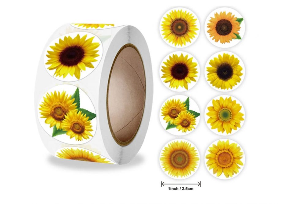 Наліпки на бобіні "Соняшники" 500шт/рул., діаметр 2,5 см