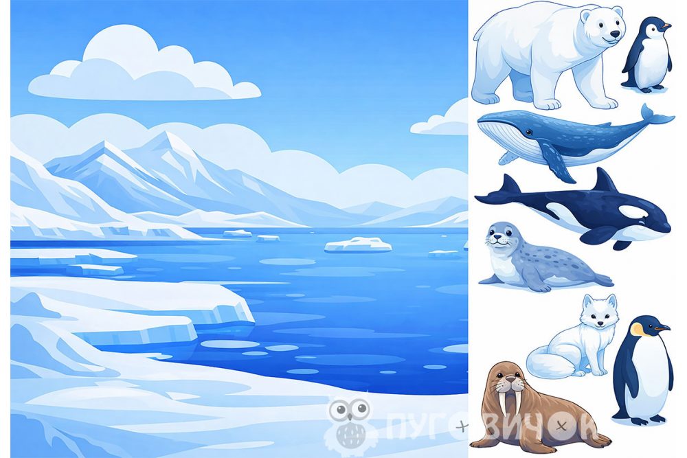 Жесткий фетр с узором "Фон+зверята: арктика/антарктика".