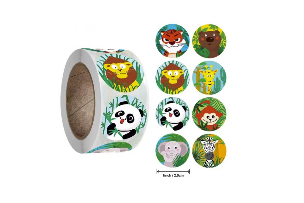 Наклейки на бобине "Зверята 7" 500шт/рул., диаметр 2,5 см