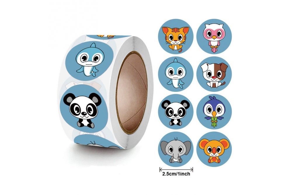 Наклейки на бобине "Зверята 8" 500шт/рул., диаметр 2,5 см