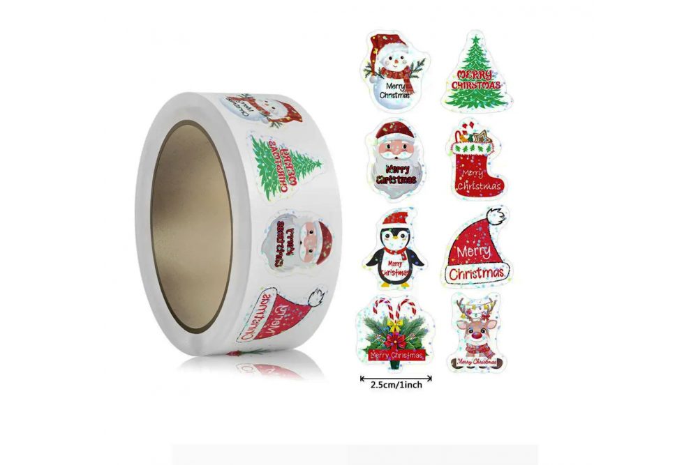 Наклейки на бобине "Новогодние фигурные 3" 500шт/рул., диаметр 2,5 см