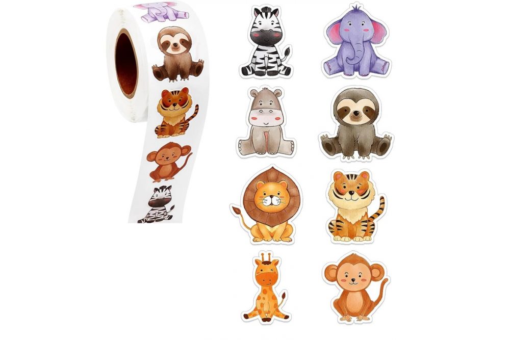 Наклейки на бобине "Зверята фигурные" 500шт/рул., диаметр 2,5 см
