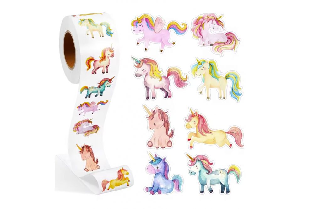 Наклейки на бобине "Единороги фигурные" 500шт/рул., диаметр 2,5 см