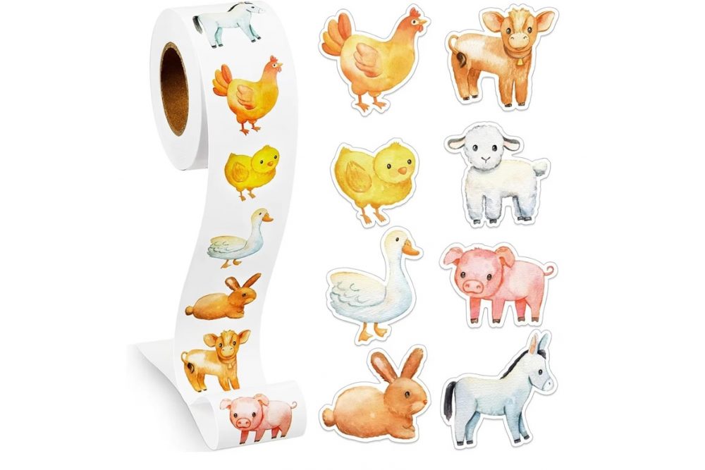 Наклейки на бобине "Зверята домашние фигурные" 500шт/рул., диаметр 2,5 см