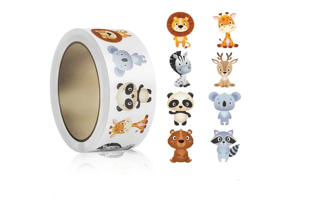 Наклейки на бобине "Зверята фигурные 3" 500шт/рул., диаметр 2,5 см