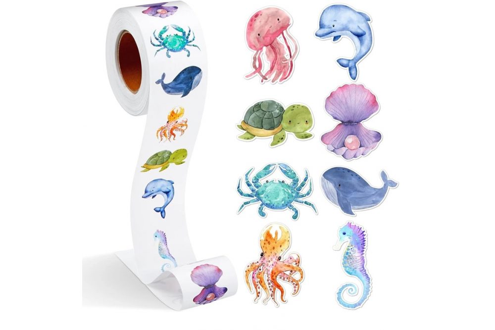 Наклейки на бобине "Морские пастельные фигурные" 500шт/рул., диаметр 2,5 см