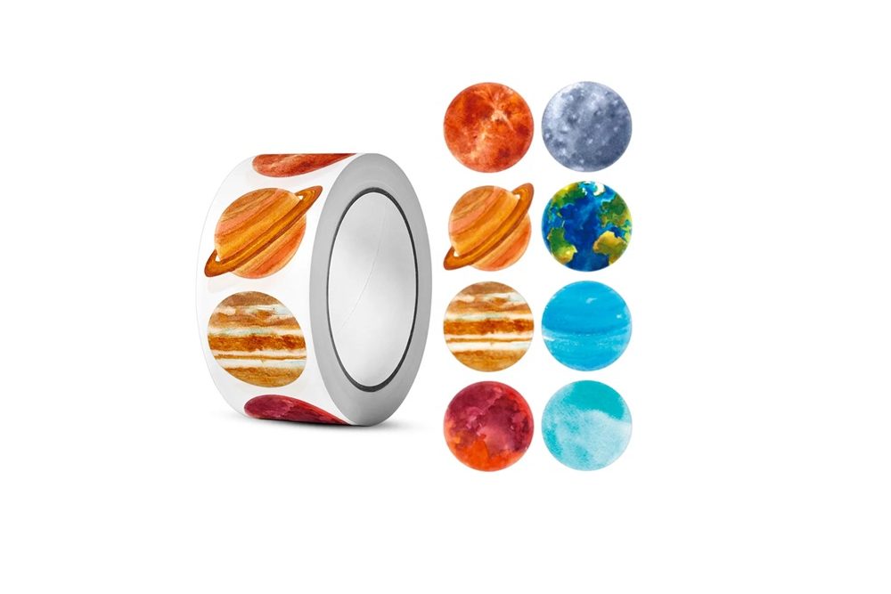 Наклейки на бобине "Планеты фигурные" 500шт/рул., размер 2,5 см