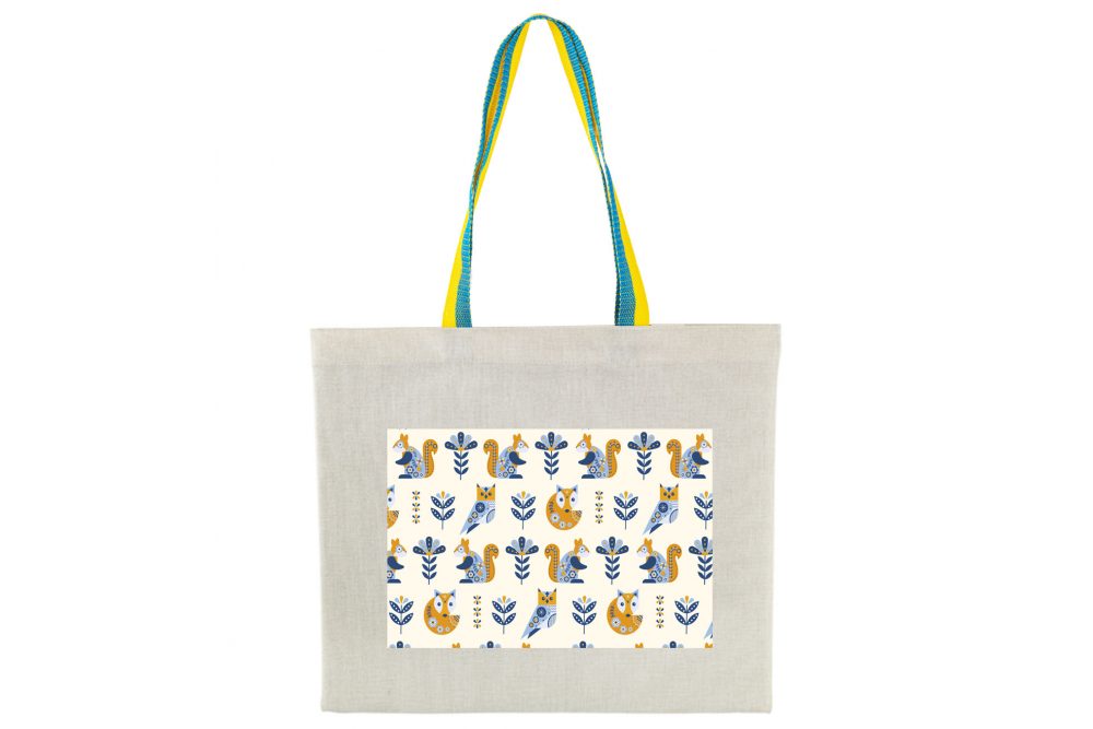 Печать на сумке-шопере 40*35см с желто-голубыми ручками