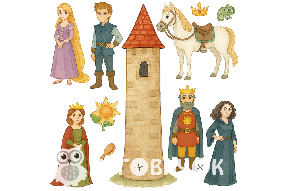 Жесткий фетр с принтом сказка "Рапунцель" 20х20см