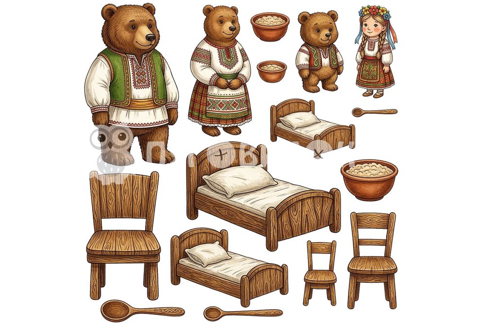 Жесткий фетр с принтом сказка "Три медведя" реалистическая 20х20см