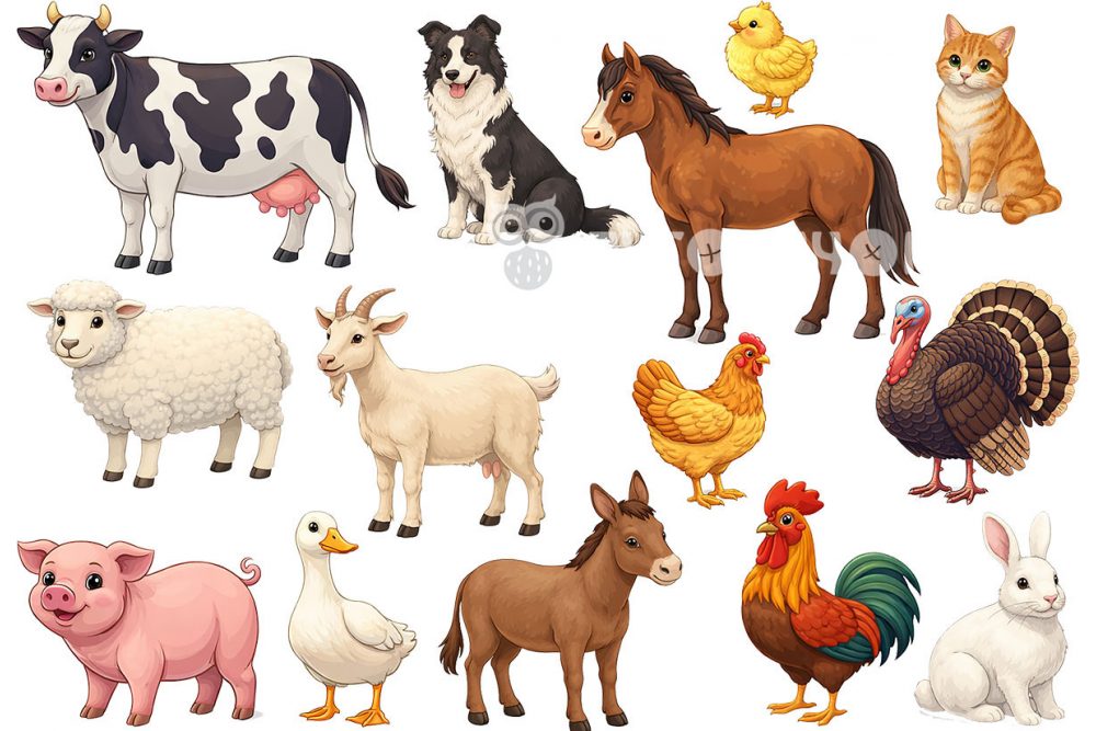 Жорсткий фетр з візерунком "Свійські тварини".